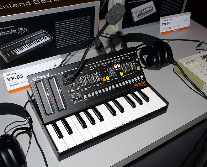 ボコーダー「VP-03」は、1980年初頭に一世を風靡したロボット・ボイスのブームを産んだ「VP-330」を再現。音楽的で明瞭度の高いボコーダーが特徴だ。「VP-330」で特に好評だった「ENSEMBLE」ボタンを搭載。独特のステレオ感を持ったコーラス効果で音色を暖かく拡がりのあるものに変化させられる。また、オクターブ・シフト、TUNEツマミとベンダーの操作により、「VP-330」ではできなかった音域での演奏も可能に。本体のサイズや使用感に合わせた「VP-03」専用設計のグースネック・マイクも付属する。オプションとして、「Roland Boutique」の設置に便利な専用ドック「Boutique Dock DK-01」、25鍵ミニ・キーボード「K-25m」を用意。