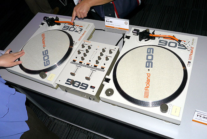 イベントが開催された「909day」にちなんで、「TR-909」のデザインを踏襲したターンテーブル「TT-99」とDJミキサー「DJ-99」が世界で3000台限定で登場。「TR-909」の発売33周年を祝う「909セレブレーション」記念モデルだ。
