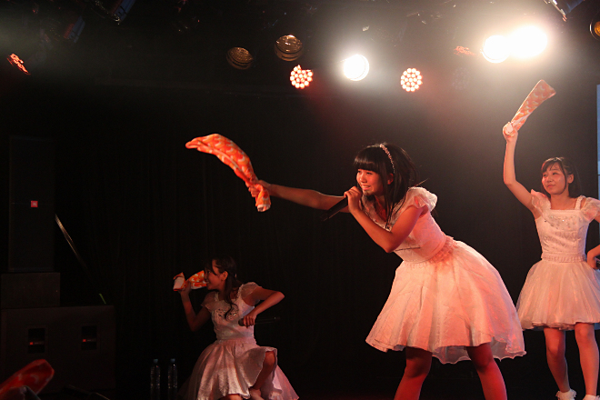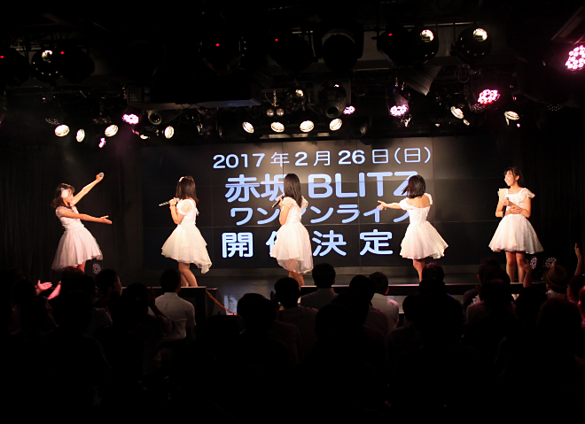 そして、竹内が「この間“重大発表がある”といってたことなんですけど」と観客に話しかけ、客席が静まりかえったところで「私たち、2月26日に赤坂BLITZでワンマンやります」と伝えると、場内には大きな歓声とともに割れんばかりの拍手がわき起こった。「今までで一番大きなステージです。2月まで私たち、精一杯頑張るんで、みなさんも一緒に頑張ってくれますかー?」と長谷川がファンに尋ねると、観客は再び大拍手でメンバーにエールを送った。ファンの中から自然と「赤坂BLITZ、釣ろう!!」「釣ろう釣ろう!!」という頼もしい声があちこちで上がりだす。