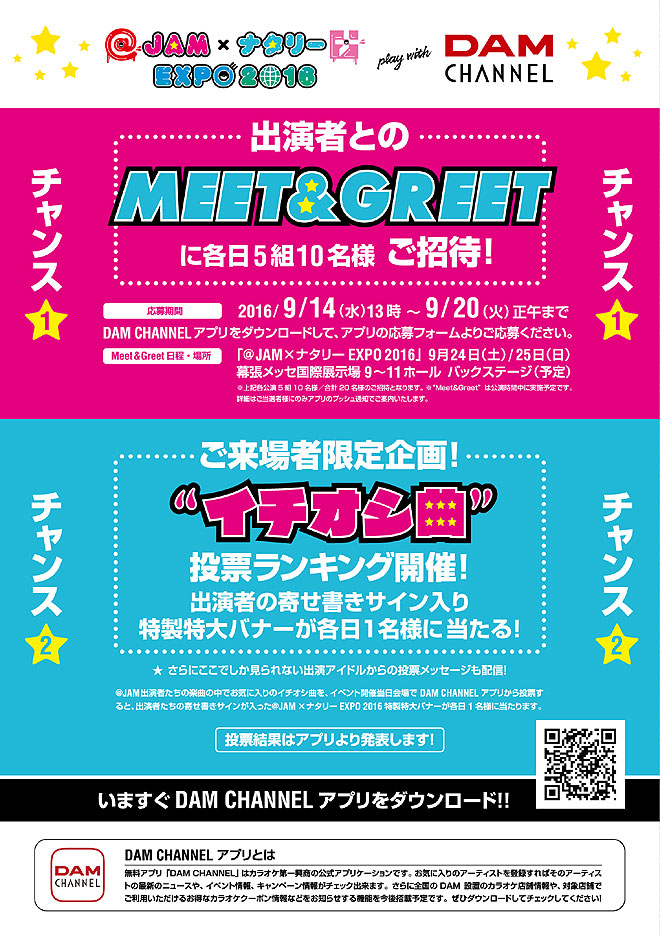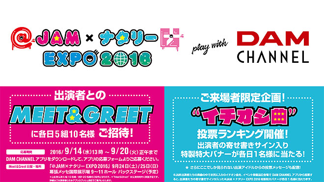 来場者限定 お気に入りアイドルとのMeet&Greetやグッズが当たる! 「@JAM×ナタリーEXPO 2016」とDAM CHANNELアプリがコラボ