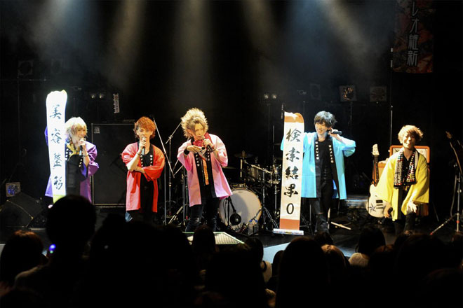 そんな会心作を掲げた全国14カ所15公演を廻るワンマンツアー『#カメレオ維新』が、いよいよ開幕。開演前のフロアには、Takashi作曲によるカメレオの過去曲をフィーチャーしたエレクトロナンバーが流され、平日にも関わらず会場に駆けつけた、もしくは、急遽決定したニコニコ生放送の独占生中継を観ているカメコカメオ(カメコカメオはカメレオファンの愛称)の興奮を沸々と高めていた。