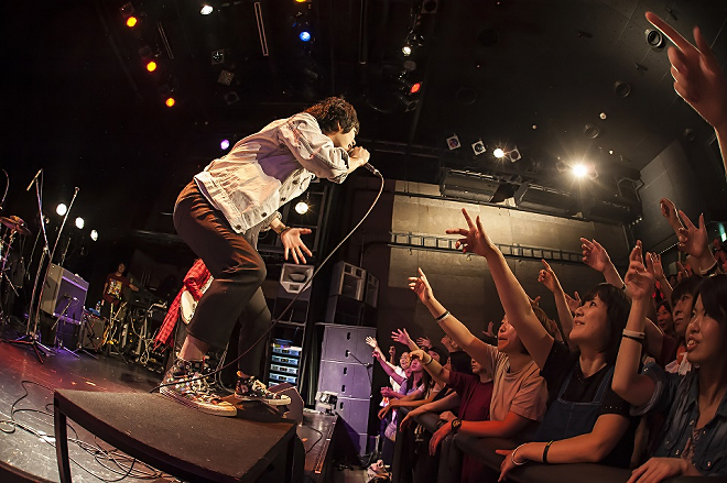 この後は息つく間もなく、アニメ『NARUTO疾風伝』のEDテーマでもある「青のララバイ」を含むアップテンポな楽曲を披露。会場は常時、拳があがり、一気にラストの「恋はPEACH PUNK」まで盛り上がった。