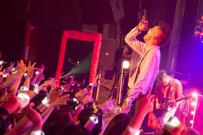 さらにライブは「ICU」、前回のライブで初披露した「White Rabbit Inc.」などグルーヴィーな横ノリナンバーを連発。ライブ後半になると「Buzz」「Addicted」とアップチューンを立て続けに演奏し、会場の熱気はピークに達する。「Here We Go」では途中で演奏をやり直すハプニングもあったものの、その後はライブの定番曲「Radio’s Dead」、マンスリーライブ初回から演奏し続けている「The Twins」と盛り上がりに欠かせない楽曲を披露。最後の「Taste Maximum」ではミラーボールがまばゆい光を放つ中フロアはハッピーな空気に包まれ、「Chapter III The Cheshire Cat Presents FAKE? “Live Wonderland”」はクライマックスを迎え幕を下ろした。