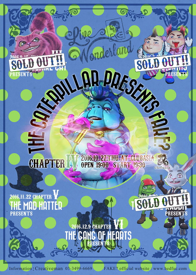 FAKE?のマンスリーライブ『Live Wonderland』、次回は10月27日に今回と同じclubasiaにて「Chapter IV The Caterpillar presents “Live Wonderland”」と銘打って開催。次回公演にはvistlipのYuh(Gt)がスペシャルゲストとして出演することも決定している。このライブに向けて、Yuhは「期待やら不安やら嬉しいやら色々な感情が渦巻いてるんですが、せっかく声をかけて頂いたのでメンバーさん、FAKE?ファンのみんなと楽しみながらしっかり爪痕を残したいと思います!」と意気込みを寄せている。チケットは現在発売中なので、ぜひこの貴重な機会をお見逃しなく。