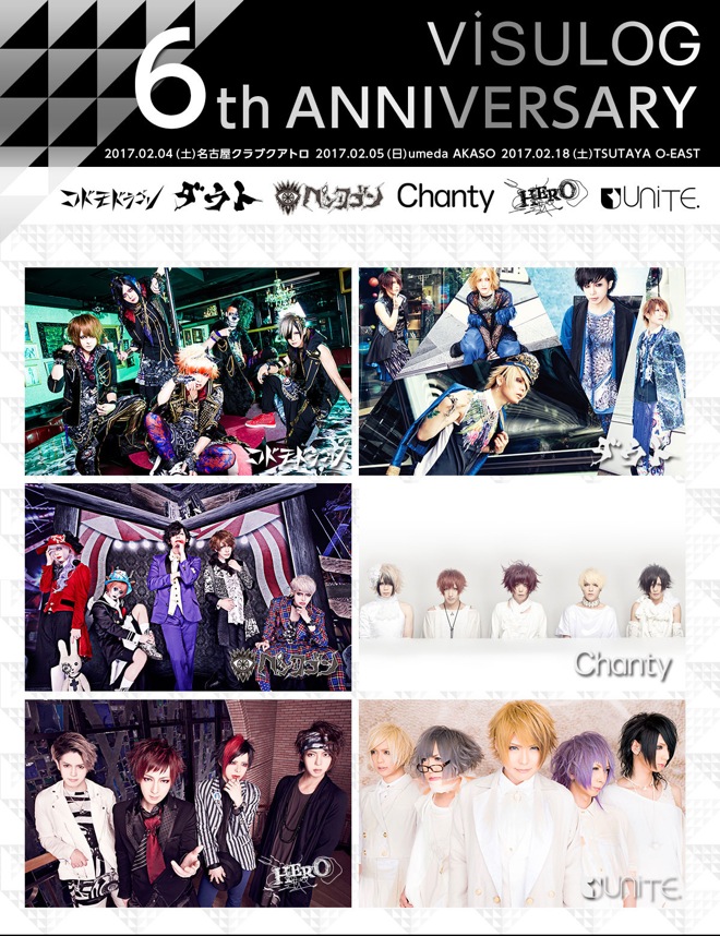 <ViSULOG 6th ANNIVERSARY>が2017年2月、東名阪にてコドモドラゴン、ダウト、ペンタゴン、Chanty、HERO、ユナイトを迎えて開催されることが決定した。