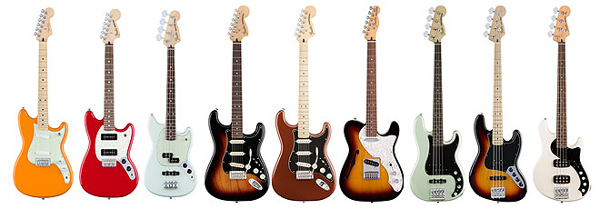 ショートスケールで初心者にも弾きやすいスチューデントモデルの「Duo-Sonic」や「Mustang」に使い勝手の良いスペックをフィーチャーした「OFFSETシリーズ」。ハムバッカー搭載の「Duo-Sonic HS」やMP-90ピックアップ搭載の「Mustang 90」、Precision BassピックアップとJazz Bassピックアップから成るPJピックアップを搭載した小型ボディの「Mustang Bass PJ」など5機種をラインナップする。