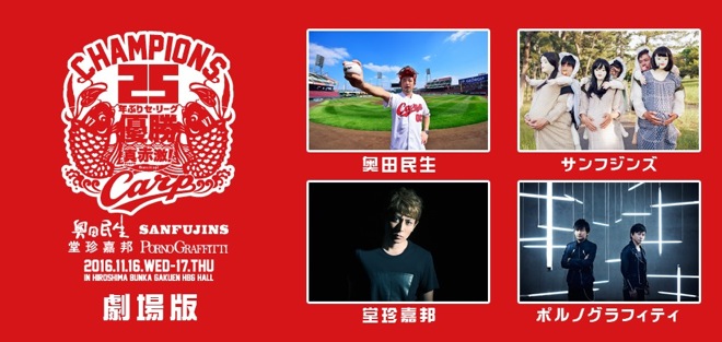 奥田民生やポルノ等出演、広島カープ優勝祝賀ライブが全国の映画館で