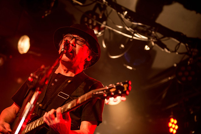 次に、本イベント・タイトルの由来でもある「狼煙」では、BLIND HEADZのハードボイルドな側面がひときわ際立ち、一朝一夕では醸し出せないブルージーなロック・フィーリングに唸らずにはいられない。そして疾走感あふれる「FREE」と、間髪入れず突入する「EAR」がこのライブのハイライトと言えるだろう。めくるめくバンド・アンサンブルを畳みかけ、ボルテージ高めのラウドなサウンドに国岡のクールかつ洗練のボーカルが融和しBLIND HEADZのケミストリーが強く表れた瞬間だ。