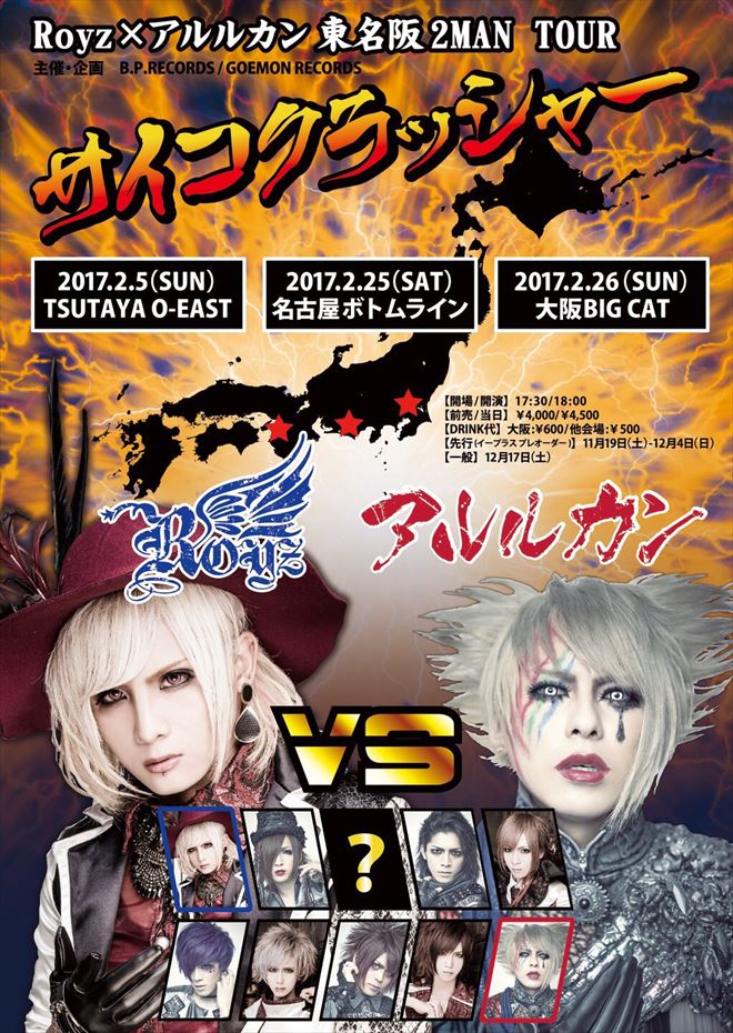 2017年2月5日(日)、2月25日(土)、2月26日(日)にRoyzとアルルカンによる2MAN東名阪ツアーが開催されることが発表された。