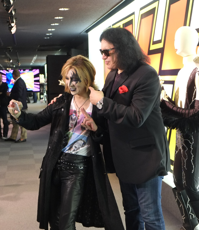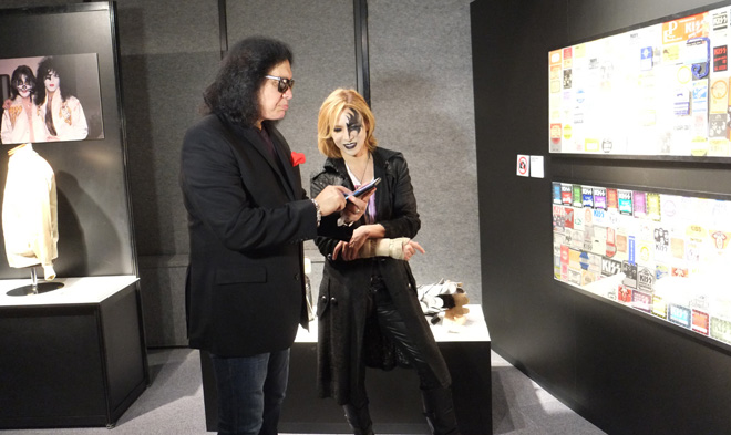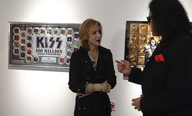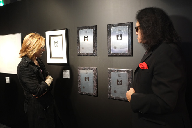公開前日となった10月12日の夜、一般開場よりもひと足早く会場にやってきたYOSHIKIをジーン・シモンズ自らがエスコートし、数々のエピソードを交えながらメモラビリアひとつひとつを紹介、YOSHIKIも圧倒的なKISSレアアイテムに目を輝かせていた。