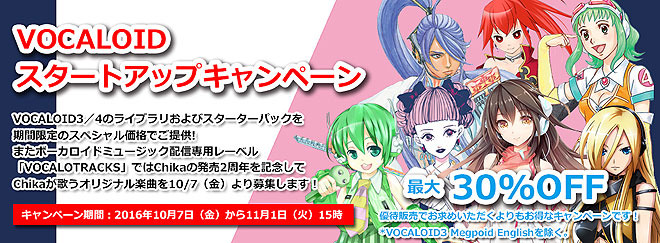 ■ライブラリが最大30%オフ、お得に買えるVOCALOIDスタートアップキャンペーン