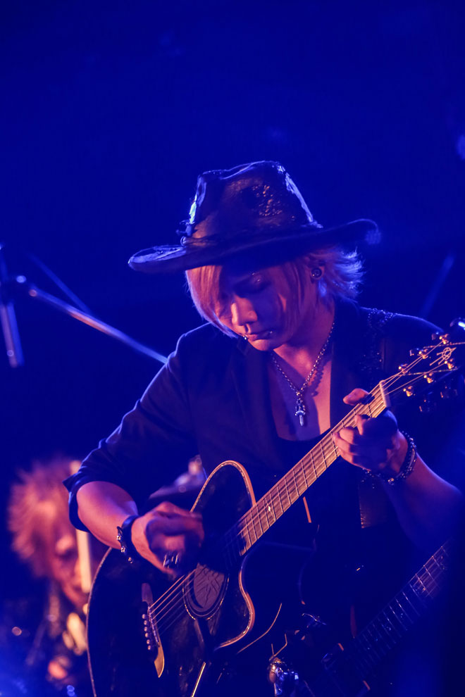 「微笑みを亡くした愛と自由」では、悲鳴のようなギターの掛け合いと<あなたの心は苦しいはずなのに美しい>とマイクスタンドにすがるように歌う鋲(Vo)の歌声が痛々しいほど胸に響く。後半の「REMEMBER ME」では、華やかな演奏に、和己(G)がつまびくアコースティックギターの音が重なり、祈りにも似た響きを奏でた。