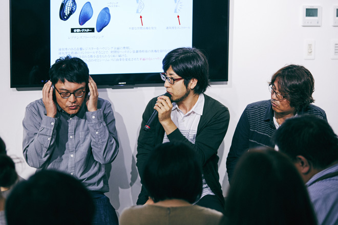 潮見:たとえば貝殻を耳に当てると波の音がする、というのがありますよね。ゴーッと音がする。ヘッドホンも同じなんです。つまりアーティストが作った音に余分な音が乗ってしまう。それを取り除きたいと思って、新しいハウジングを作りました。