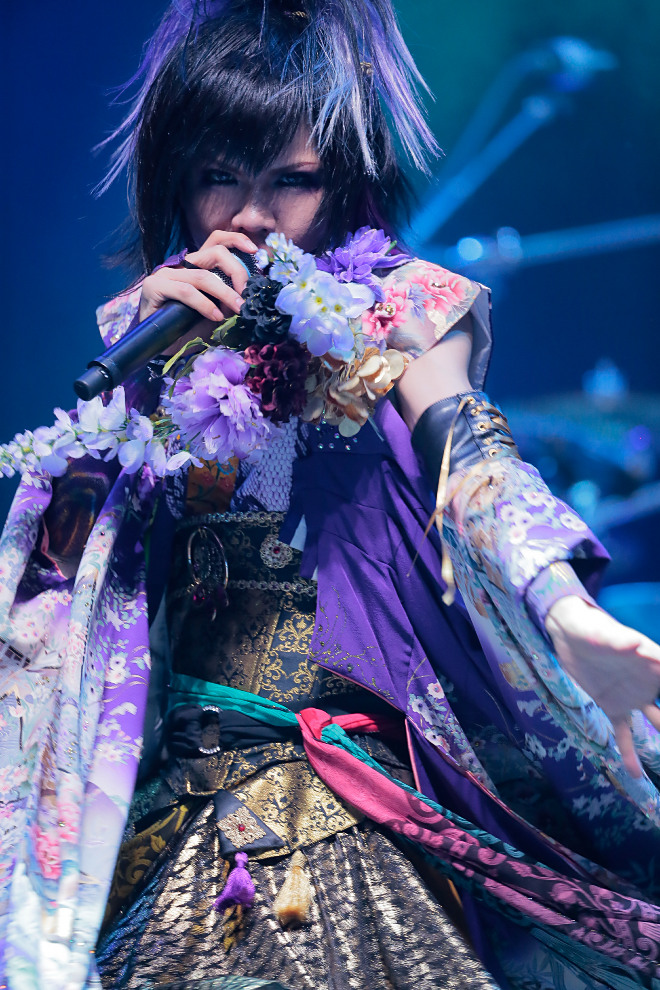 続いてはVISUAL STAGEが最後の出演者を迎える。己龍の登場だ。そのヴィジュアルやバンド名のみならず、サウンドや歌詞の面にも“和”のテイストを取り入れている彼ら。オープニングSEについてもそうした色は貫かれているし、まばゆい光のなかで炸裂した1曲目の「天照」もまさにそうした楽曲。こうした多数のバンドが出演する催しというのは、〈いつか機会があれば観てみたいと思っていたバンド〉のライヴ・パフォーマンスに一度に触れられる好機でもあるわけだが、僕自身にとってはこの己龍もそうした存在のひとつだった。つまり〈とにかく勢いがある〉といった評判は耳にしていたものの、これまでに一度も観たことがなかったのだ。