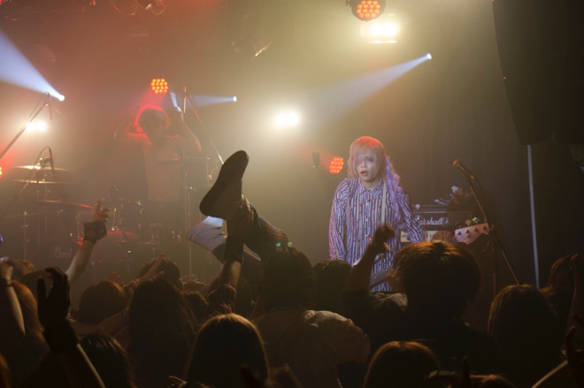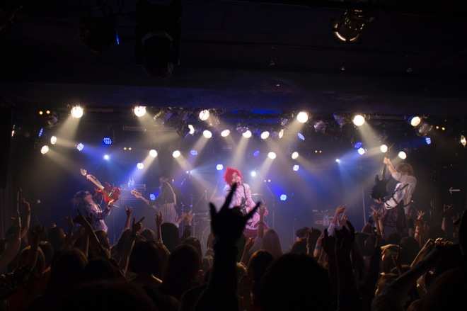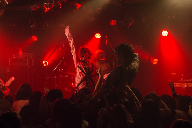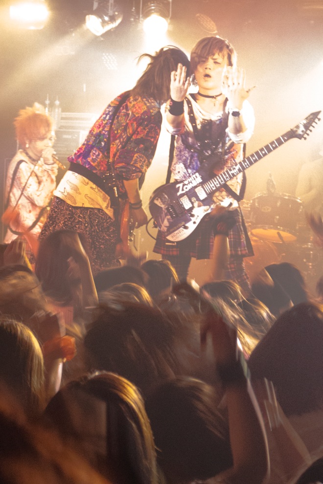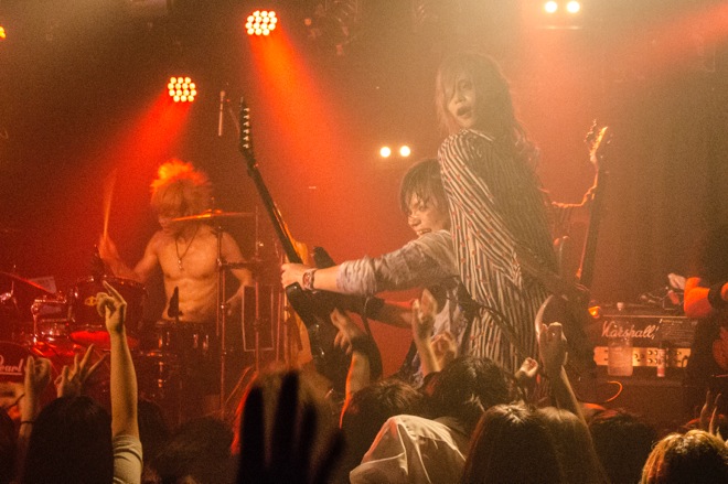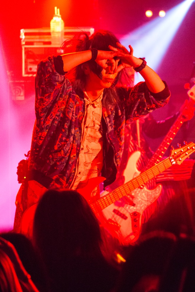 こうして一気に、実に完成度の高いオリジナル3曲を披露。持ち曲はこれで全てだが、ワンマンだけあってこれで終わるわけにはいかない。ここからは、音源に収録された「BLACK DROPPer」(DaizyStripper)をはじめ、それぞれが所属するバンドの代表曲をFREAKMAN.として演奏。その中には、なおと涼太が敬愛してやまないバンドkannivalismの「大好き」も含まれていたのが印象的だった。