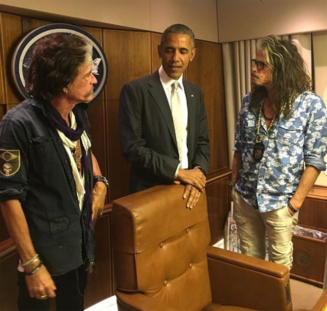エアロスミスのスティーヴン・タイラーとジョー・ペリーは、彼らの飛行機の離陸が遅れたため、エア・フォース・ワンの中を見学し、オバマ大統領とも会うことができたそうだ。