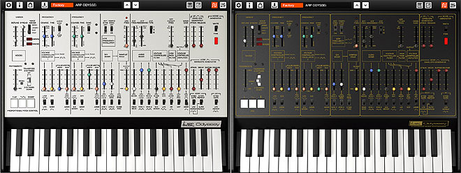 また、生産時期によって異なる3種類の「ARP Odyssey」のデザインを瞬時に切り替えることも可能。黒パネルにオレンジのシルクが入ったRev3の標準デザインに加え、白パネルのRev1と、黒パネルに金のシルクが入ったRev2のデザインも、それぞれのフィルターの特徴を生かした50個の新規プリセット・サウンドとともにオプションとして、アプリ内購入できる。