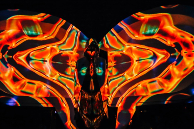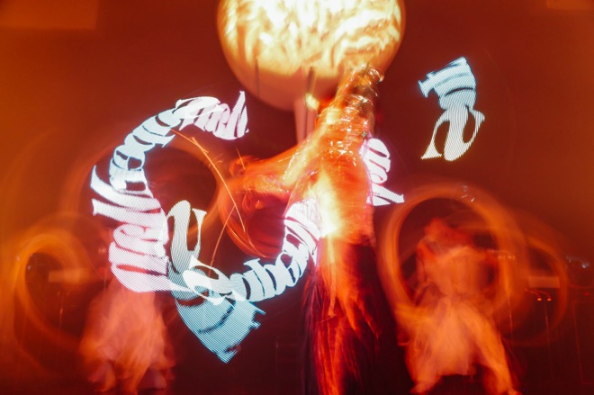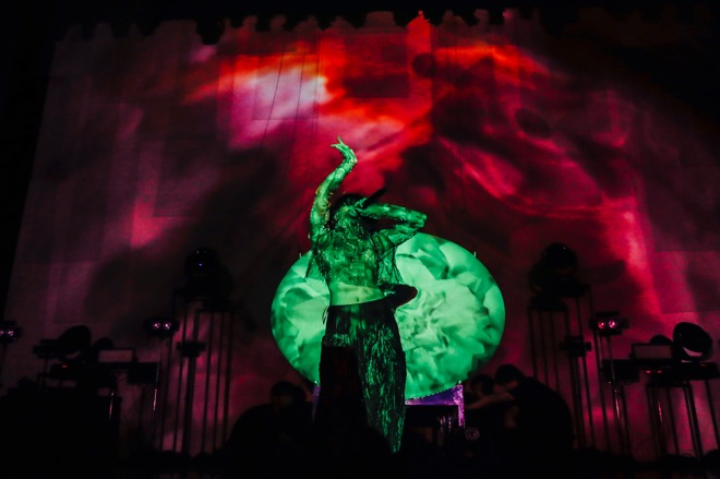 9曲目「ウランちゃん」以降の中盤すぎのセクションでは光と闇のコントラストを活かしたライティングやサイケデリックな映像演出、オーディエンスの緊張感と集中力を掌握するようなコムアイのパフォーマンスは新機軸を提示するものだった。