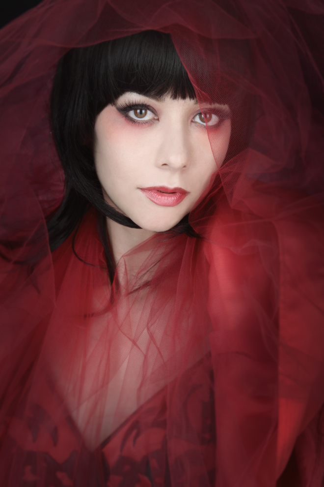 AKANE LIV:今回、コンセプトは決めなかったんですけど、どういうアルバムにしようかなと思った時に、赤い殺伐とした森のようなところに人間なのかよくわからない女性がいて、表情があるようなないようミステリアスな感じで立っているというイメージがあったんです。ジャケットでもちょっとつかみどころのない表情のものを選んでいるんです。パッと見た時に誰かわからないって言われたんですけど、それくらいいつもと違うのものにできたら面白いかなと思って。そういうイメージの中から楽曲も作っていただいたんですが、その女性が歌っていると言っても成立するような楽曲がほしいと。それで歌詞の中にも紅蓮とか赤いイメージが出てくるんですよ。