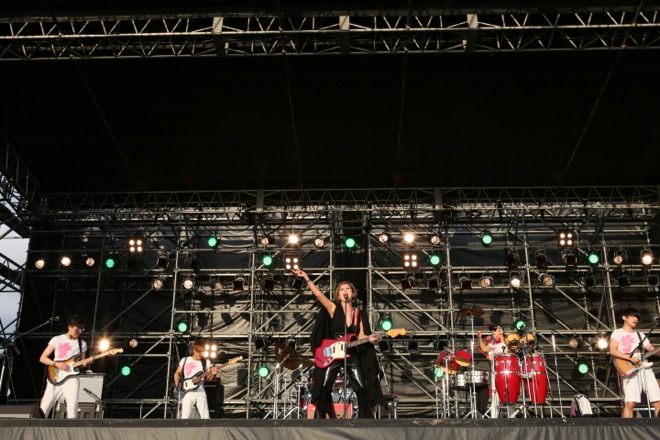 ドラムの田中匠郎とパーカッションの斉藤ノヴ、北村 力と二宮 楽のツインギターにベースの堀川峻平で構成された5ピースが重厚なサウンドを轟かせ、夏木は悩ましげに大きく体を揺らしながらギターをかき鳴らす。音楽に年齢や肩書、キャリアは関係ないとばかりに繰り出される徹頭徹尾のロックンロール。女優・夏木マリとロックフェスとがうまくリンクしない若い世代を鼓舞し、虜にする瞬間だ。