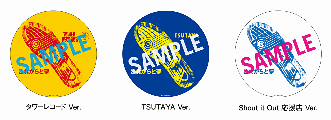 また、CD予約・先着購入特典は、ジャケット撮影で実際に使用されたスニーカーの足跡をデザインとした缶バッジで、タワーレコード ver. / TSUTAYA ver. / Shout it Out応援店ver.の全3種。