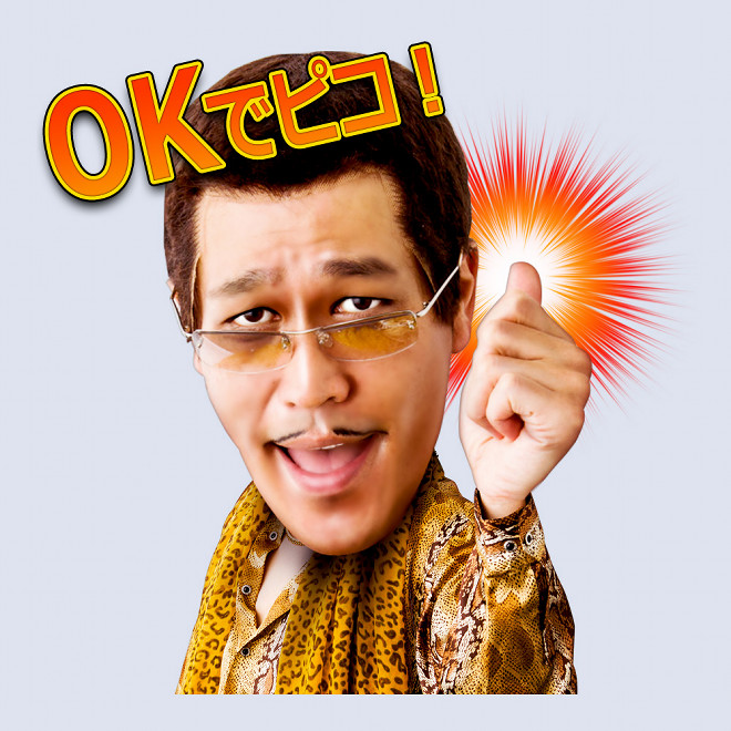 このスタンプは1セット24種類のラインナップで、24種のうち8種類はピコ太郎のボイス付き、さらに16種類はサウンド付きの豪華仕様となっている。