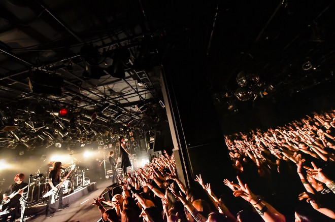 「やっと会えたな、東京!」という葉月(Vo)の一言で始まったこの日のライブは、9月14日に発売されたアルバム『AVANTGARDE』を提げた全国ツアーのセミファイナルとなる公演。チケット発売当日に即完売となった超満員のフロアに向け、葉月が「今日はすげぇ人数に愛されに来ました! 最後までよろしくお願いします!」と言い放つと「THE FATAL HOUR HAS COME」「KILLING CULT」と、爆音ナンバーが畳み掛けるように披露される。