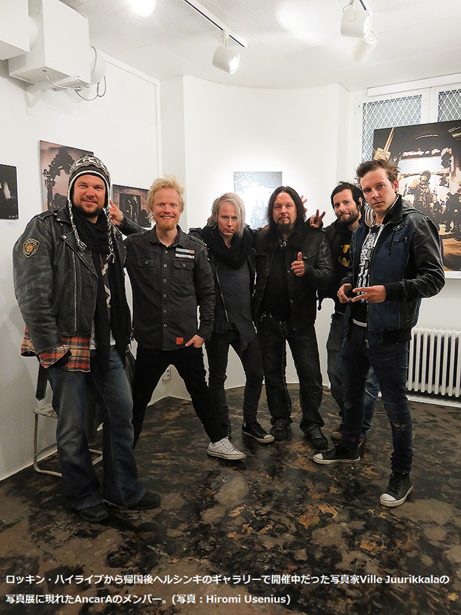 このロッキン・ハイライブに出かけたのはヘルシンキのロックバンドAncarA。このライブの計画を進めるうち、まずは参加に難色を示したベーシストとドラマーが脱退。新メンバーを加え約2年間の準備期間をえて史上最高地ロッキン・ハイライブに挑んだのは、このメンバー。