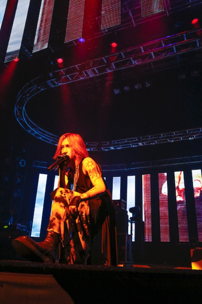LEDパネルに覆われたステージが露わになると、メンバー5人がステージに登場。高まるフロアの熱を一旦抑えるかのように、「Umbilical cord」から静かにライヴが幕を開けた。静寂と激情が交錯するステージはアルバム『CORD』の世界観を表現し、彼らの感情がより明確になる。終盤戦はメンバーがしきりにオーディエンスを鼓舞し、ラストまで一気に駆け抜けた。