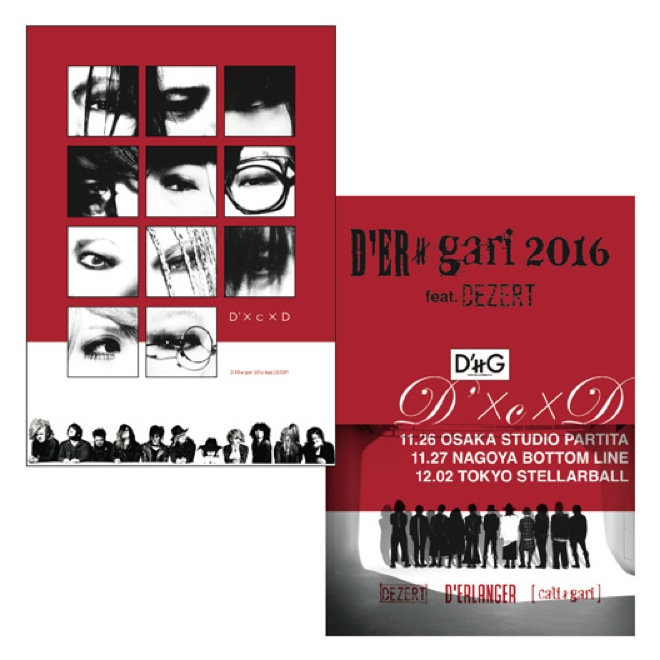 <D’ER≠gari 2016 feat.DEZERT 東名阪LIVE>が11月26日、大阪STUDIO PARTITAよりスタートする。この開催に先駆けて各会場で販売される公式グッズが発表となった。
