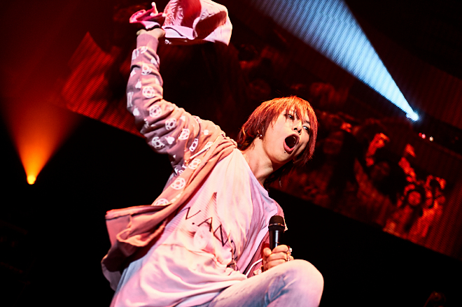 前日の“極悪SuG”によるダークでゴシックなコンセプトライブから一転、ポップでカラフルな“極彩SuG”がステージを席巻した2日目。衣装から演出、セットリストまで何一つとして同じものがない2DAYS公演を開催し、それぞれの公演で歓声のボリュームを計測、どちらが盛り上がったか対決するのがこの<VersuS>だ。