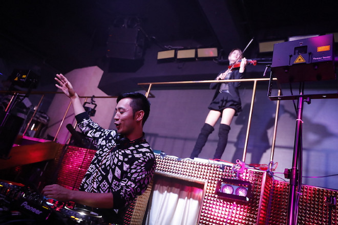 続いて登場したDAISHI DANCEのプレイが会場の熱を更に高め、DAIKIとヴァイオリニストのAyasaのコラボレーション、はたけのギターとMARC PANTHERのDJによるライブが実現するなど、<TOKYO BLACK CIRCUS>のコンセプトを体現するようなジャンルレスでハイブリッドなステージが次々と展開された。
