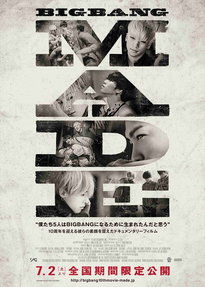 『BIGBANG MADE』はBIGBANGのデビュー10周年を記念して制作された同グループ初のドキュメンタリー映画で、全世界13の国と地域(32都市66公演) で約150万人を動員した2度目のワールドツアー<BIGBANG WORLD TOUR 2015~2016 [MADE]>の全340日間の記録が収められている。2016年6月から韓国、7月から日本の劇場で順次公開されていた。