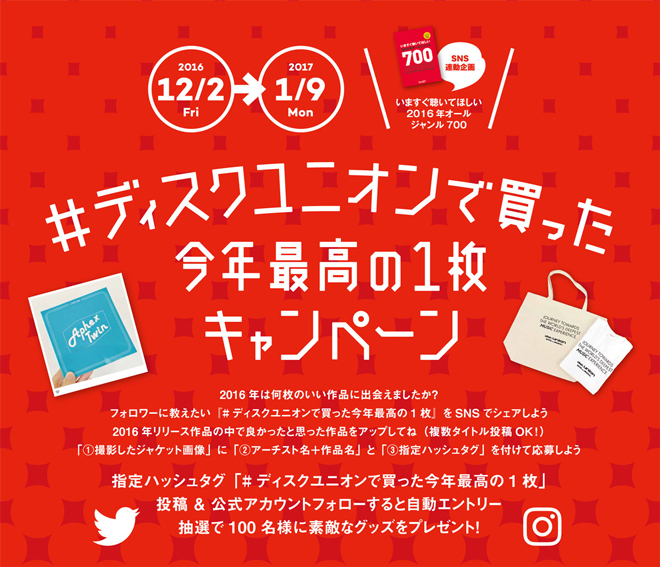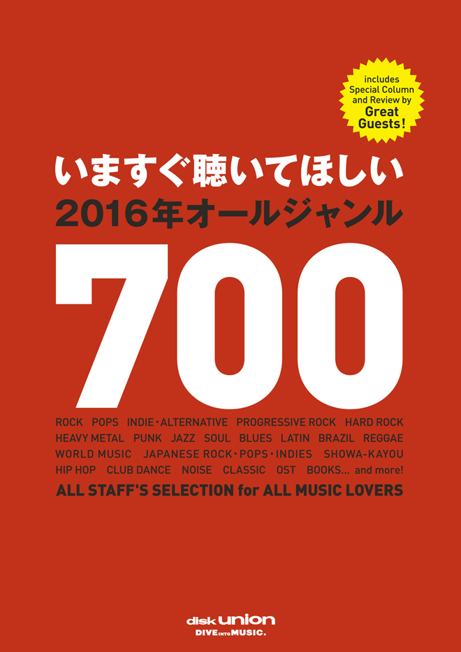 ディスクユニオンが、スタッフが今年印象に残った1枚を自らレビューするフリーマガジン『いますぐ聴いてほしい2016年オールジャンル700』を発行。12月3日(土)より各店店頭、またはオンラインショップにて配布する。ディスクユニオン・メンバーズ会員限定の無料配布となる。