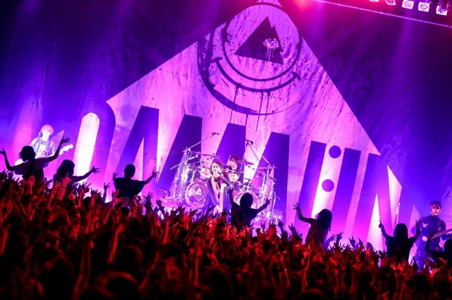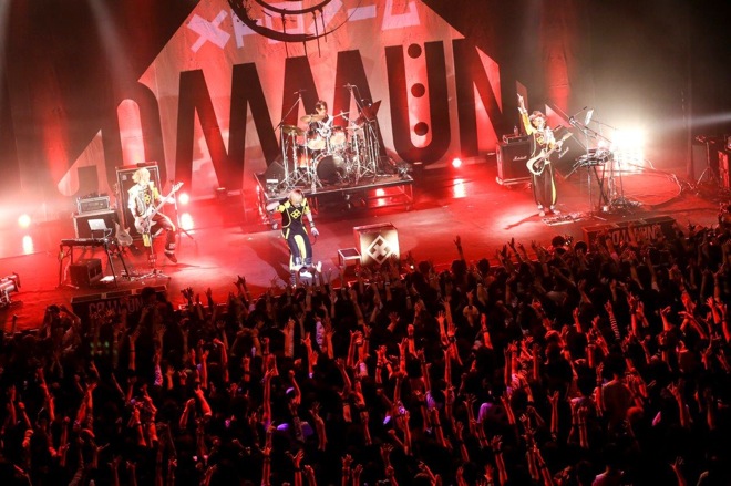 3番手に登場したメトロノームは09年に活動を休止し、2016年9月に活動を再開したばかり。この日のライヴのMCで「昔見て“カッケェ!”と思ったのが間違いじゃなかった、と思って嬉しかった」と逹瑯が語っていたように、MUCCがインディーズ時代に共演していたのが、このバンドだ。「みなさん、一瞬で7年、歳を取ったことはありますか? 僕らはあります」と笑わせると、ブランクを感じさせないステージパフォーマンスと、エレクトロとバンドサウンドを融合した独創的なサウンドでオーディエンスの体を揺らす。9年ぶりの新曲「解離性同一人物」では、重厚かつポップなサウンドにキャッチーなメロディを乗せて、シンセやテルミンの演奏を加えた最新型のメトロノームサウンドで沸かせた。