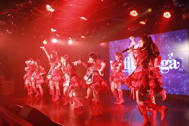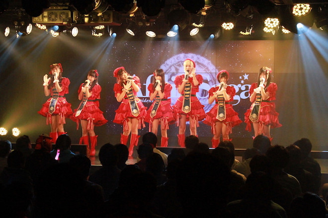 続いて、アフィリア・サーガは2017年1月25日にリリースするNEWシングル「魔法のチョコレート伝説」の新衣装で登場。「魔法のチョコレート伝説」はもちろん、「聖ナルwktkノ星」「ココロノヒカリ」「Lost In The Sky」「転校ガール」、さらに2チームに分かれての「BitterSweet」「Everlasting Friends」の全8曲を届け、最後は桃色革命とのコラボレーションによる「Winkも届かない」のパフォーマンスで観客を魅了した。