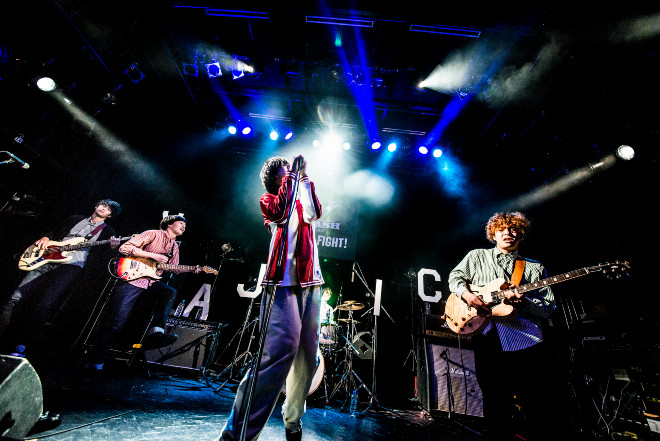 遂に7組目、最後のオーディションアクトは、これまた夏のMASH FIGHT!セミファイナルの東京編の優勝バンドである「YAJICO GIRL」。彼らは相変わらずステージでの抜け感がとてもあり、バックビートが小気味よいとても血色のいいサウンドが会場を包んだ「レトロシティ」。皮肉たっぷりな歌詞を、軽快なギターとリズムで歌い上げる「いえろう」は四方颯人(Vo)の脱力感と不敵さが炸裂し、イエローに照らし出された会場がさながらMVのようで不思議な高揚感をもたらした。音楽への自由なアプローチ、そして自分達の中で確立されている「カッコいい」の定義を叩きつけるかのように「Casablanca」では、やや大げさなリズムがゆったりと会場を乗せていく。楽曲単位での個性がきちんと表現されていて、俺達はまだまだこんなものじゃない、と余裕と伸びしろを感じさせるアクトを見せた。