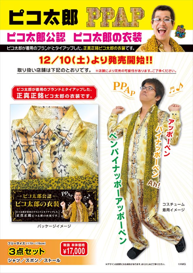 ピコ太郎、公式コスチューム&正真正銘の衣装が発売決定