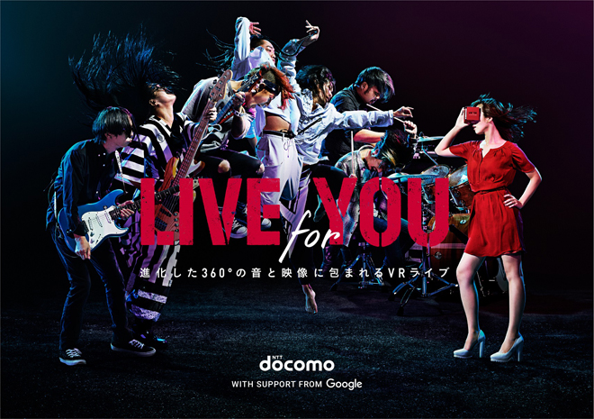 (1)最新バージョンのAndroid またはiOS 向けYouTubeアプリをインストールした状態で、「LIVE for YOU」スペシャルサイト(https://www.nttdocomo.co.jp/special_contents/liveforyou/)へアクセス。「LIVE for YOU」映像を再生してください。360°で「LIVE for YOU」映像をお楽しみいただけます。