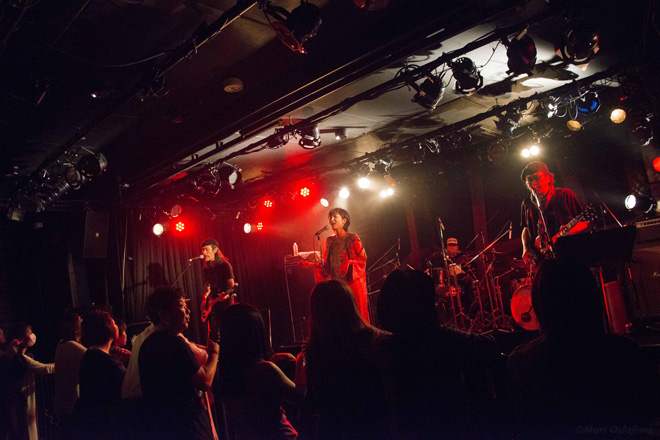 そして「FREE」のイントロに乗って国岡真由美(Vo)が登場し、クールな佇まいがドライブ感に満ちたラウドなサウンドの中に瞬時に溶け込み、疾走するビートと共に空間は一気にBLIND HEADZの世界へと化していく。