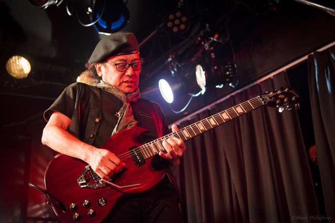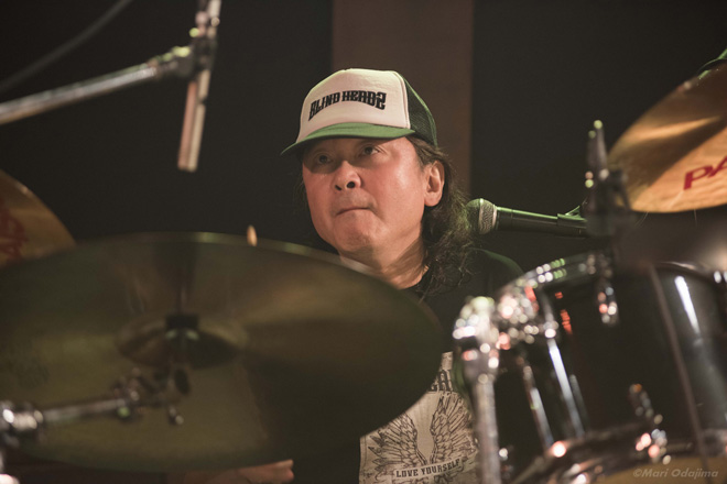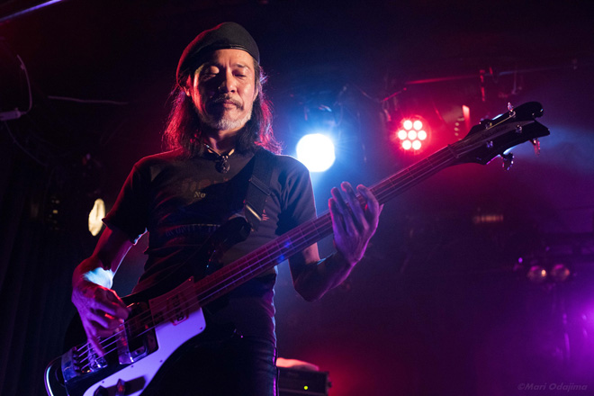 続いて「回天」「ブラック・コルベット」と立て続けにブルージーかつタイト、タメの効いたリズムでハードボイルドに攻めた後、国岡の挨拶をはさんで、「DRAGON YEARS」と「Grab the Earth」のミディアム・ナンバーでBLIND HEADZ流のポップネスを展開。普遍性を持つ爽快なメロディと広がりのあるサウンドがひときわ光彩を放っていった。