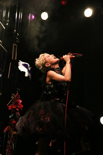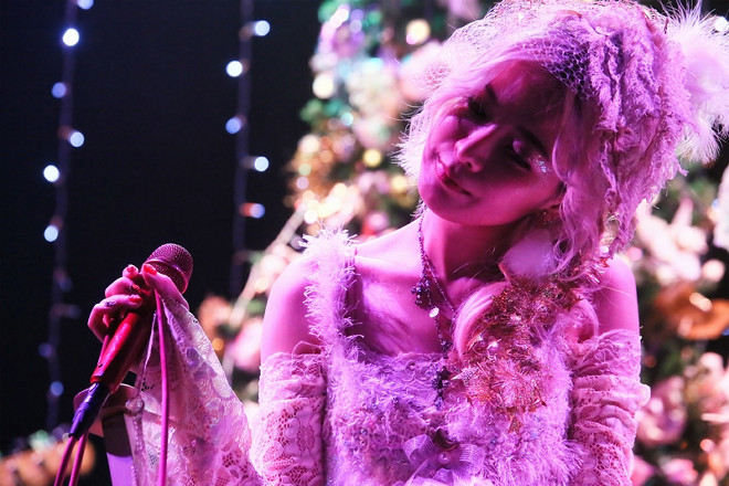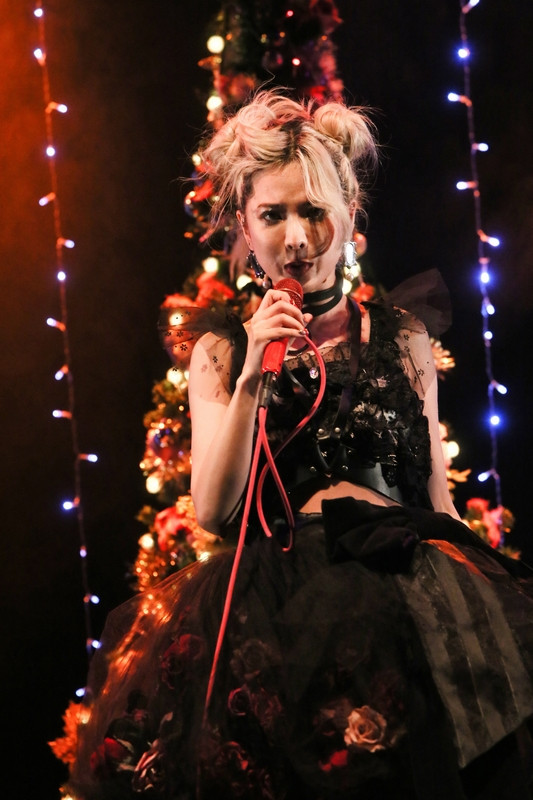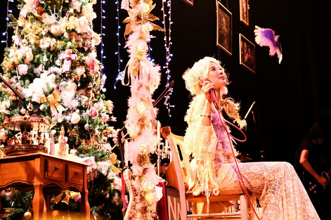 ハンドメイドニットブランド「縷縷夢兎(るるむう)」のデザイナー、東佳苗によるクリスマス装飾が施されたステージで、<Holy Night>、<Bloody Night>と題した2公演を行なった今回のライブ。ギターに奥村大(wash?)、ベースにカンサ(BRAZILIANSIZE)、ドラムに中畑大樹(syrup16g)、キーボードにテナ・オンディーヌ(惑星アブノーマル)らを迎え、アンコールも含め2公演で計32曲、およそ4時間にも及ぶステージが展開された。
