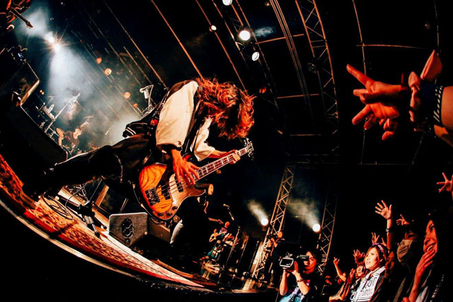 そこから雪崩れ込んだ終盤では「libido」で満場の拳が突き上がり、「Brave New World」で起こる“ハイ!ハイ!”の声が、疾走するボーカルとプレイにさらなる勢いを加えてゆく。その声の大きさは、毎回オーディエンスを二手に分けて声援合戦をさせていた「ミッドナイト/狂騒/DARLING:」でも、「なんか分けてやるのもったいねーな。全員でトコトンやろうぜ!」とAKiに言わしめたほど。さらに渾身の声と拳をあげるフロアにダイブして文字通りの狂騒を呼ぶと、「STORY」では自らが信じた道を往けとポジティブなメッセージを爽快なバンドサウンドで叩きつけて、湧き上がる場内に笑顔でサムズアップを突きつける。