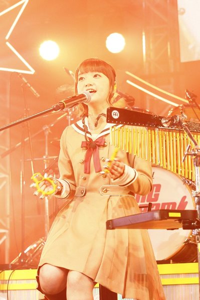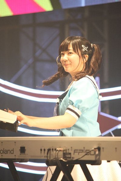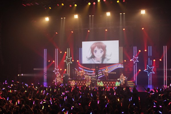 この後に披露されたのはアニソンのカヴァーコーナー。いつもはドラム台で叩いている大橋が下に降りて伊藤と歌ったテレビアニメ『Angel Beats』の挿入歌「Crow Song」ではタイトルを告げただけで「うおーっ!」と大盛り上がりでサビが大合唱に。『けいおん』の劇中歌「ふわふわ時間」では西本と大塚がヴォーカルをとり、伊藤はショルダーキーボードに持ち替えて演奏し、ベースソロやキーボードソロも。愛美が歌い、西本と大塚の3人でカヴァーした『TIGER&BUNNY』の前期オープニングテーマ「オリオンをなぞる」では、愛美のイメージカラー、赤のサイリウムが会場で揺れた。そして再び5人揃ってのカヴァーコーナー最後の曲は『魔法少女リリカルなのはA’s』のオープニングテーマ「ETERNAL BLAZE」で愛美と大橋が初のツインヴォーカルを披露し、場内は沸きに沸いた。
