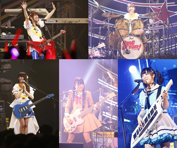Poppin’Party (戸山香澄(CAST:愛美)、花園たえ(CAST:大塚紗英)、牛込りみ(CAST:西本りみ)、山吹沙綾(CAST:大橋彩香)、市ヶ谷有咲(CAST:伊藤彩沙))