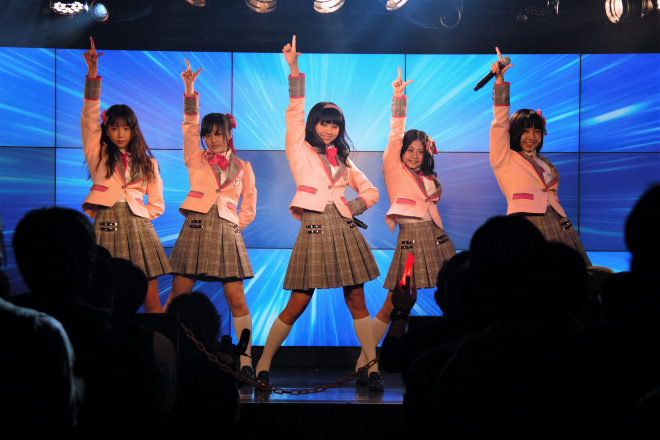 新衣装となるピンクの制服姿で登場した5人。「いつか世界を釣り上げます!」というおなじみの自己紹介を挟んで、早速ライヴはスタート。1曲目は2017年2月1日に配信限定リリースされる新曲「My Victory」。気持ちを奮い立たせてくれるようなアップテンポの応援ソングは、ちょうどこの公演の1週間前にMVが先行公開されたこともあって、早くもオーディエンスと一体になって盛り上がるナンバーに。歌う前のMCで、新衣装の靴のヒールが高いから踊るのが心配だとメンバーそれぞれが口にしていたが、そんな不安は微塵も感じさせないぐらいに元気いっぱいに歌い踊る。