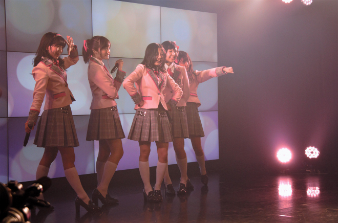 後半は「今の季節にピッタリの曲」(安藤)として「ムーンライトキッス」「キメキメクリスマス」をキュートに歌い上げると、クリスマスの思い出をそれぞれに語りだす。「クリスマスは毎年家族と過ごすけど、私が好きなものばっかり出してくれるから幸せ!」(聞間彩)、「サンタさんに手紙を書いて置いたら、朝起きたら無くなってた。しかもお礼のサインが英語で書いてあって、あれはママやパパには書けないから、絶対にサンタはいます!」(小西)と、ほのぼのすぎるエピソードを披露した。