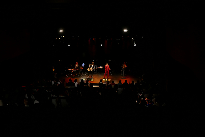 開演を迎えるとジャケットに身を包んだ吉田山田とBU-NI(Key)がステージに。タキシードに身を包み、ピアノの弾き語りに乗せて「メリーゴーランド」からしっとりとスタート。吉田結威(Gu/Vo)もギターを持たずに歌うことのみに専念し「ありがとう」での二人のハモりもより一層際立って聴こえる。