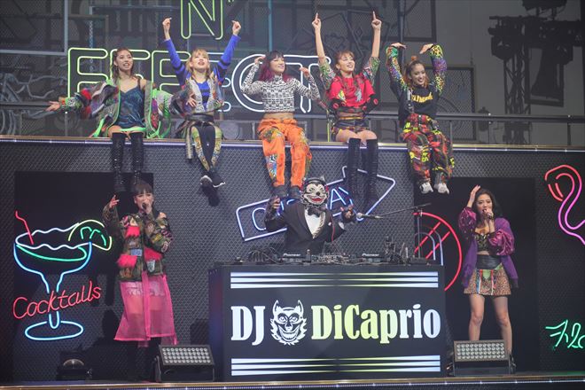 さらに1月18日(水)発売の『E.G. CRAZY』からリード曲「ALL DAY LONG DAY」のフルバージョンなどをステージいっぱいに駆け回りながら披露した。ステージが再びHappinessだけになると、2つ目のサプライズとして2月8日(水)発売のニューシングル「REWIND」を初披露。火柱が燃え上がる中、ロックなビートと切ない歌声で魅了した。
