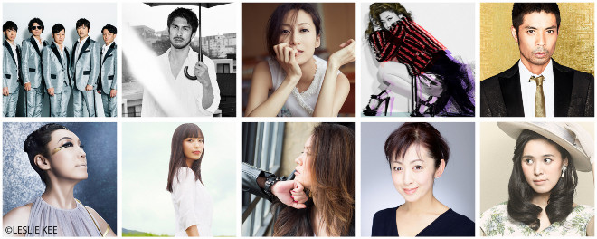 ▲(上段左より)ゴスペラーズ、平井堅、一青窈、JUJU、久保田利伸 (下段左より)松任谷由実、miwa、大黒摩季、斉藤由貴、手嶌葵